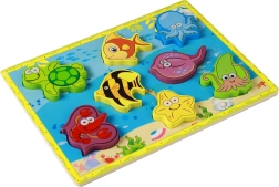 Dieses Holz-Steckpuzzle mit Meeresmotiven schenkt Kindern Freude am Entdecken von Formen und Farben. Die Teile sind so gestaltet, dass kleine Händchen sie leicht greifen und in die passenden Öffnungen einsetzen können – so werden Geschicklichkeit und Bewegungsgenauigkeit ganz natürlich gestärkt.