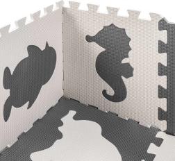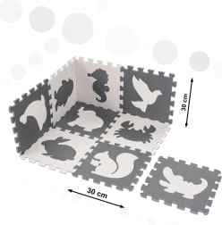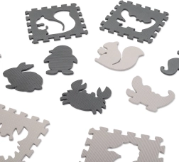 Entdecken Sie das kreative Spielvergnügen mit der Tier-Puzzle-Schlaumatte aus Schaumstoff. Diese große, kontrastreiche Spielmatte bietet Kindern eine spannende Möglichkeit, Formen und Farben zu erforschen.