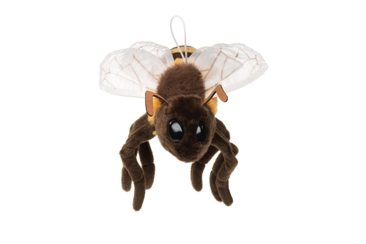 Diese Plüsch-Biene erobert die Herzen von Klein und Groß. Sie kombiniert eine weiche, angenehme Oberfläche mit stilvollen Details wie transparenten, geäderten Flügeln und markanten Äuglein. Dank der praktischen Schnur lässt sie sich mühelos über dem Bettchen, am Kinderwagenbügel oder im Kinderzimmer aufhängen.