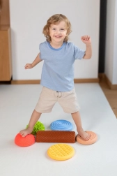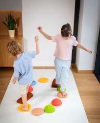 Dank der Möglichkeit, den Schwierigkeitsgrad anzupassen, kann das Niveau der Herausforderungen an die Fähigkeiten jedes Kindes angepasst werden. Die kontinuierliche Arbeit mit dem sensorischen Pfad entwickelt motorische Planung, ermöglicht bessere Ausführungen komplexer Bewegungssequenzen und fördert die bilaterale Koordination. Übungen tragen auch zur Stabilisierung des Haltungssystems und zur Stärkung der Muskeln bei, die wichtig sind, um die richtige Körperhaltung zu erhalten.
