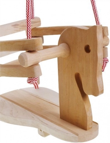 Die einzigartige Holzschaukel in Pferdeform ist die ideale Ergänzung für den Garten oder das Kinderzimmer. Hergestellt aus massivem, unlackiertem Holz, sorgt sie für Sicherheit und Spielspaß.
