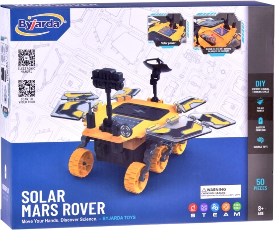 Dieser Bausatz enthält alles, was zum Bau eines Modells des marsianischen Fahrzeugs benötigt wird. Dank eines Solarmoduls bewegt sich das Modell ohne Batterien, was den Kindern die praktische Nutzung von Sonnenenergie zeigt. Es besteht aus 50 hochwertigen Kunststoffteilen, die Langlebigkeit und eine lange Lebensdauer des Modells gewährleisten.