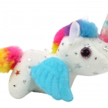 Betreten Sie eine zauberhafte Welt mit dem Plüsch-Einhorn, das Kinder auf den ersten Blick lieben werden. Das weiche weiße Fell mit silbernen Sternchen, die bunte Mähne und der Schwanz sowie die niedlichen blauen Flügelchen verleihen dem Spielzeug einen einzigartigen Charme. Nach dem Aufziehen der Kordel beginnt das Einhorn hüpfend zu laufen und mit dem Schwanz zu wedeln – der Spaß nimmt kein Ende.