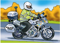 Es stehen acht Vorlagen zum Ausmalen zur Verfügung, darunter Polizeiauto, Motorrad, Boot, Lieferwagen, Hubschrauber, Pferd und Polizisten. Die Gesamtseitenzahl beträgt 16.
