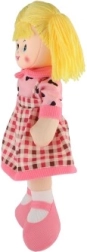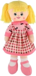 Die Stoffpuppe besteht aus weichem, sicherem Textil – ideal zum Kuscheln und Spielen.