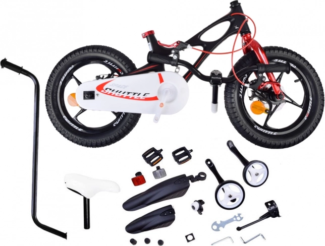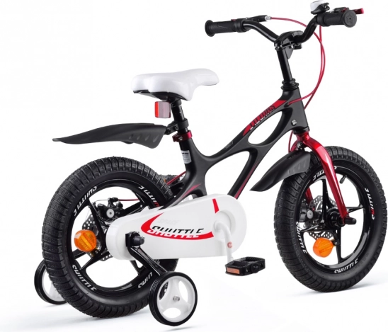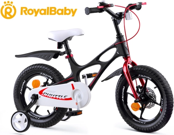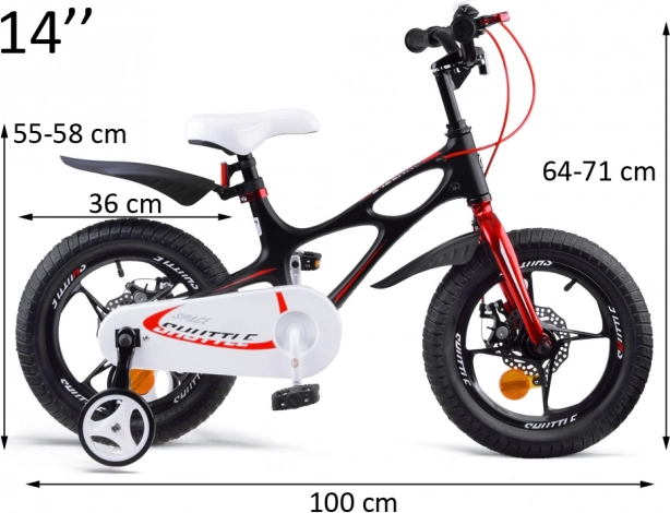 Das RoyalBaby Space Shuttle 14" kombiniert modernes Design mit erstklassiger Ausstattung für einen sicheren Start. Der Magnesiumrahmen ist außergewöhnlich leicht und stabil, breite 2,4"-Reifen und Stützräder sorgen für hervorragende Stabilität. Die doppelten Scheibenbremsen vorne und hinten bieten zuverlässige Bremskraft, auch bei den ersten Fahrversuchen.