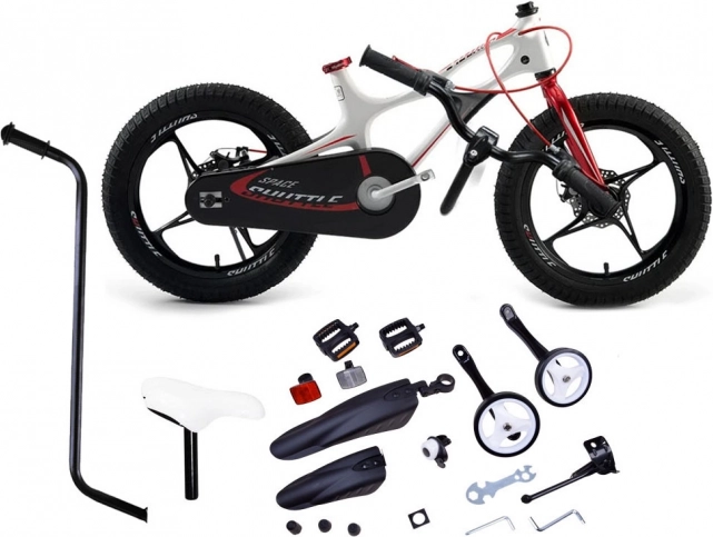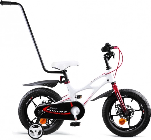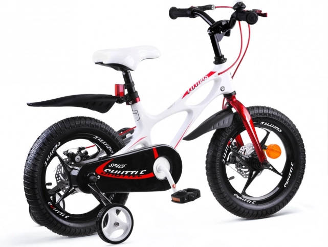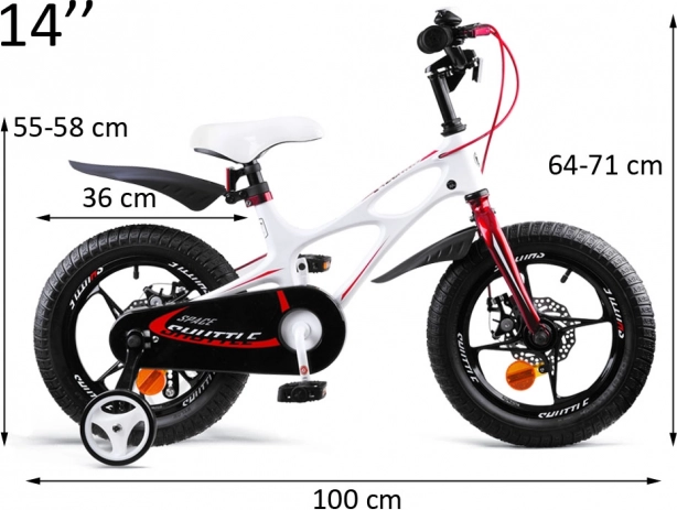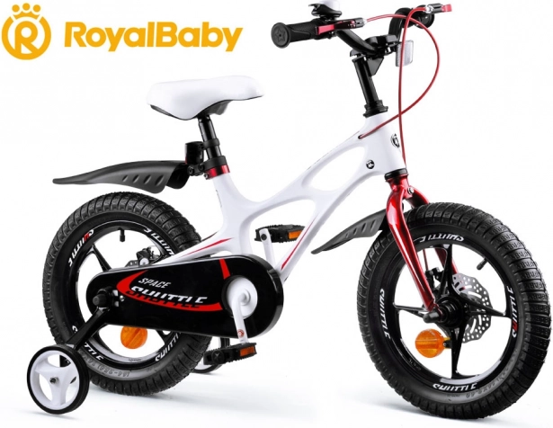 Das RoyalBaby Space Shuttle 14" ist das erste hochwertige Fahrrad für kleine Fahrer. Der ultraleichte Magnesiumrahmen mit geschwungenen Linien erleichtert die Kontrolle, während die breiten 2,4"-Reifen und Stützräder zusätzliche Sicherheit bei den ersten Fahrten geben. Doppelte Scheibenbremsen vorne und hinten sorgen für zuverlässiges und sanftes Bremsen.