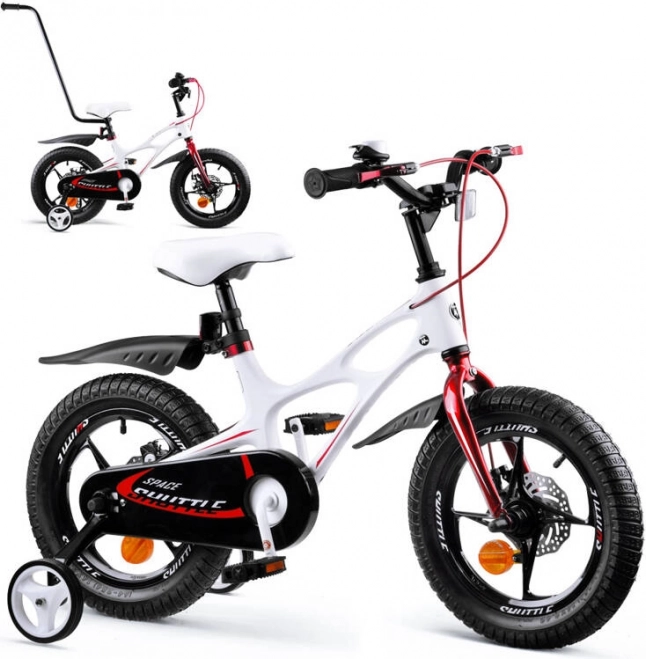 Das leichte 14" Kinderfahrrad RoyalBaby Space Shuttle mit Magnesiumrahmen bietet eine stabile Fahrt, zwei Scheibenbremsen für sicheres Anhalten sowie Stützräder und eine Schiebestange für leichtes Lernen. Dank der verstellbaren Lenkstange und des Sattels, der aufpumpbaren 2,4"-Reifen und des vollständigen Kettenschutzes ist es ideal für Kinder von 2 bis 5 Jahren.
