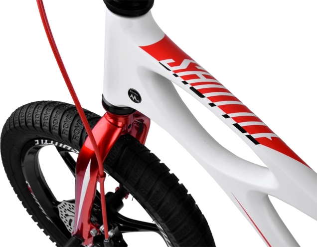 Die Magnesiumkonstruktion reduziert das Gewicht des Fahrrads, erleichtert die Handhabung und erhöht den Fahrkomfort des Kindes beim Fahren und Manövrieren.