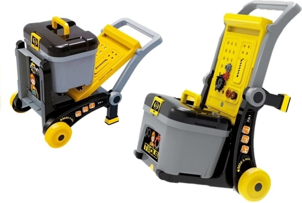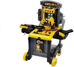 Dieses durchdachte Set für kleine Heimwerker kombiniert eine Werkbank mit Seitenablagen, einen umrüstbaren Wagen für den einfachen Transport des Werkzeugs und eine praktische Box für Kleinteile. Ideal für Kinder ab 3 Jahren und hilfreich zur Förderung von Geschicklichkeit, Hand-Auge-Koordination und Geduld beim Schrauben, Hämmern und Bauen.
