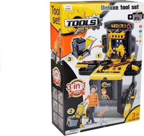 Enthalten sind realistische Kinderwerkzeuge: Säge, Schlüssel, Schraubendreher, verstellbare Schraubenschlüssel, Hammer, Zange, Platten, Schrauben, Muttern und weiteres Zubehör. Alles ist aus hochwertigem Kunststoff gefertigt für sicheres Spielen und lange Haltbarkeit. Das Set kommt in einer Geschenkverpackung und ist dank CE-Zertifizierung eine ausgezeichnete Geschenkidee.