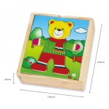 Dieses hölzerne pädagogische Spielzeug bietet die Möglichkeit, sechs Bilder eines niedlichen Bärchens in verschiedenen Stimmungen und Kostümen zusammenzusetzen. Die Hauptvorteile dieses Spielzeugs umfassen nicht nur Spaß, sondern auch die Förderung manueller Fähigkeiten und logischen Denkens sowie das Lernen, Emotionen zu erkennen.