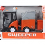 Machen Sie Ihre Kinder mit der Reinigung von Bürgersteigen auf spielerische Weise vertraut mit diesem Kunststoff-Bürgersteigkehrmaschine. Dieses batteriebetriebene Modell beeindruckt mit akustischen und Lichteffekten, die durch das Drücken von Knöpfen aktiviert werden. Das Fahrzeug ist mit sich drehenden Bürsten ausgestattet, was ein realistischeres Kehren ermöglicht.