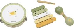 Das Set enthält Tamburin, Xylophon und Maracas, die es Kindern ermöglichen, mit verschiedenen Klängen und Rhythmen zu experimentieren.