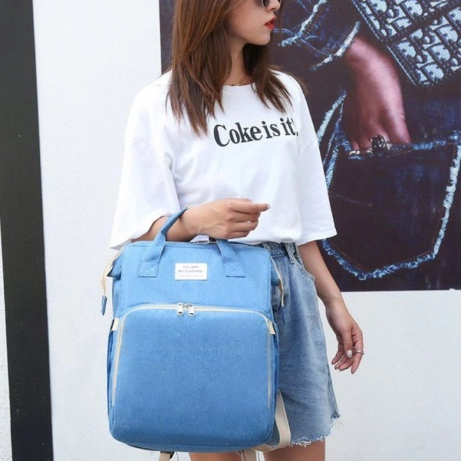 Multifunktionaler Rucksack für die moderne Mutter, der sich an einen hektischen Lebensstil anpasst. Mit einer praktischen Taschenanordnung bietet er Stauraum für mehrere Fläschchen für Essen oder Trinken des Kindes, ein Fach für Feuchttücher, das sich nutzen lässt, ohne die gesamte Packung zu entnehmen, sowie ein Hauptfach zur Aufbewahrung größerer Gegenstände. Dieser Rucksack ist universell einsetzbar und bietet unterwegs eine Ruhegelegenheit für Kleinkinder in einem kleinen Reisebettchen. Dank des multifunktionalen Designs kann der Rucksack auch als Tasche oder als Trolley verwendet werden.