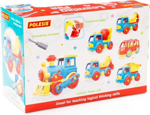 Der unterhaltsame Kunststoff-Betonmischer für kleine Baumeister fördert die Feinmotorik, das logische Denken und die Kreativität. Kinder können das Fahrzeug selbstständig mit dem Schraubendreher zerlegen und wieder zusammenbauen, den funktionsfähigen Mischtrommel-Behälter drehen und mit der beiliegenden Baufahrer-Figur spielen.