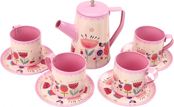 Dieses komplette Kinder-Teeset bringt das Café-Flair direkt ins Kinderzimmer. Dank der leichten und robusten Metallausführung können Kinder ihren Freunden und Kuscheltieren mühelos Tee oder Kaffee servieren. Das rosafarbene Design mit Blumendekor fällt sofort ins Auge und unterstützt kreatives Rollenspiel.