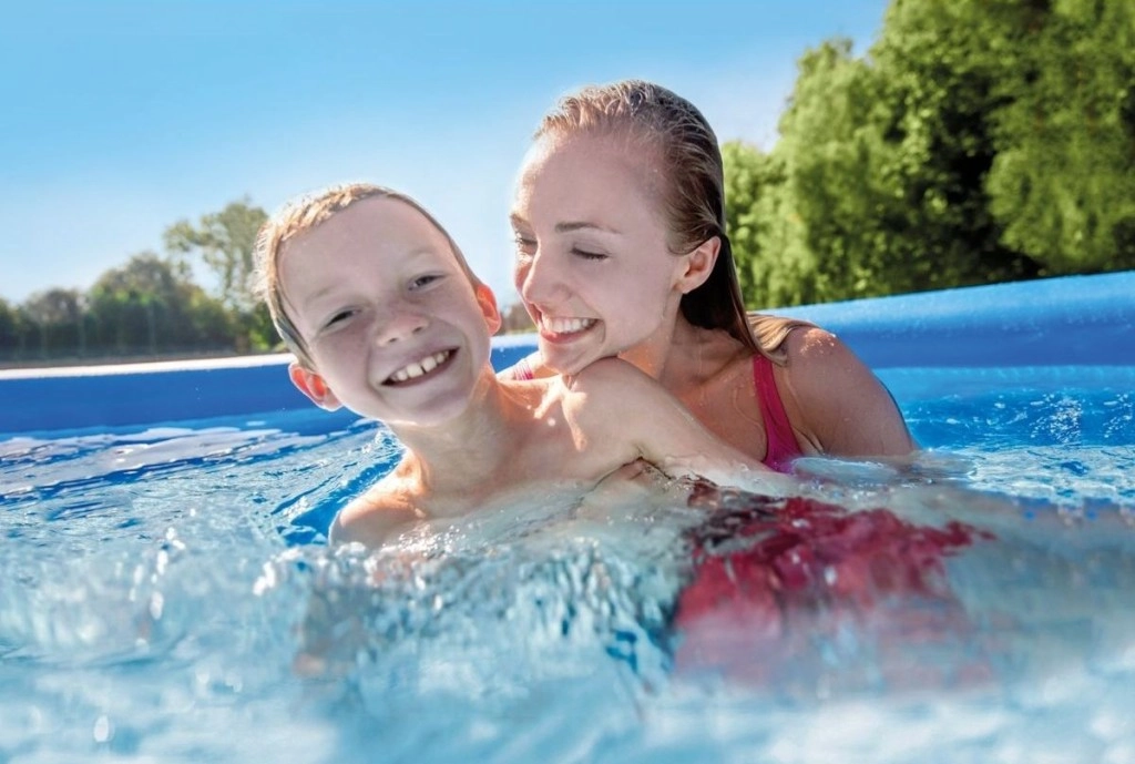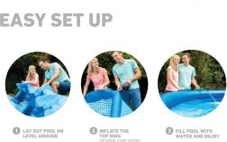 Einfache Vorbereitung ohne Werkzeug – blasen Sie den oberen Ring auf, füllen Sie Wasser ein und genießen Sie die Erfrischung nahezu sofort.