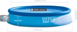 Genießen Sie den Sommer in vollen Zügen mit diesem geräumigen Aufstellpool mit einem Durchmesser von 396 cm und einer Höhe von 84 cm. Dank der schnellen Installation ist der Pool in 10 Minuten befüllbereit, das große Volumen von 7.290 l bietet ausreichend Platz zur Erfrischung für die ganze Familie und die robuste Konstruktion mit aufblasbarem oberem Ring sorgt für Komfort und Stabilität.