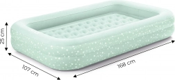 Diese aufblasbare Matratze ist für Kinder konzipiert und hat leicht erhöhte Ränder, um ein Herunterfallen von der Matratze zu verhindern. Sie ist ideal für den Innenbereich als Kinderbett.
