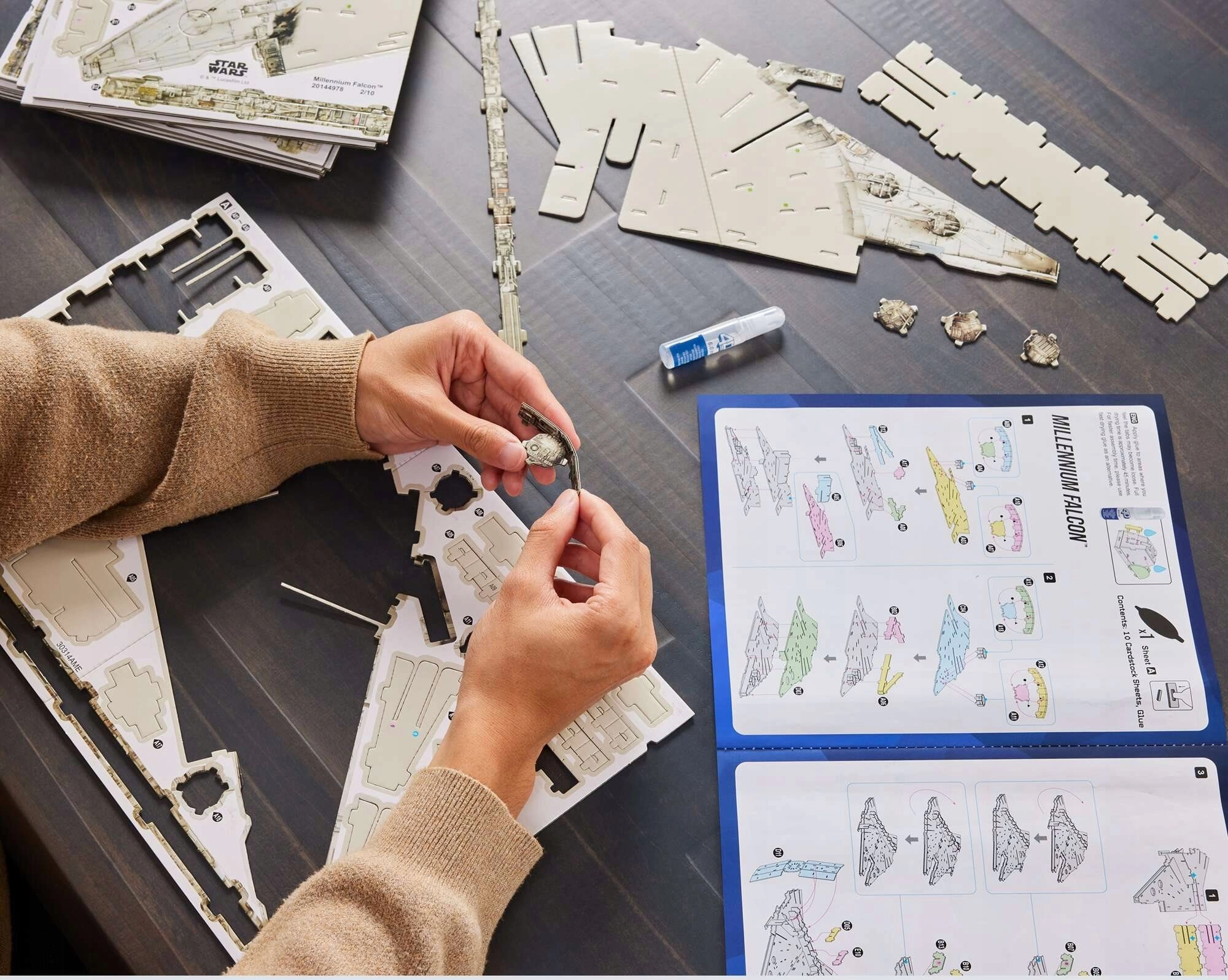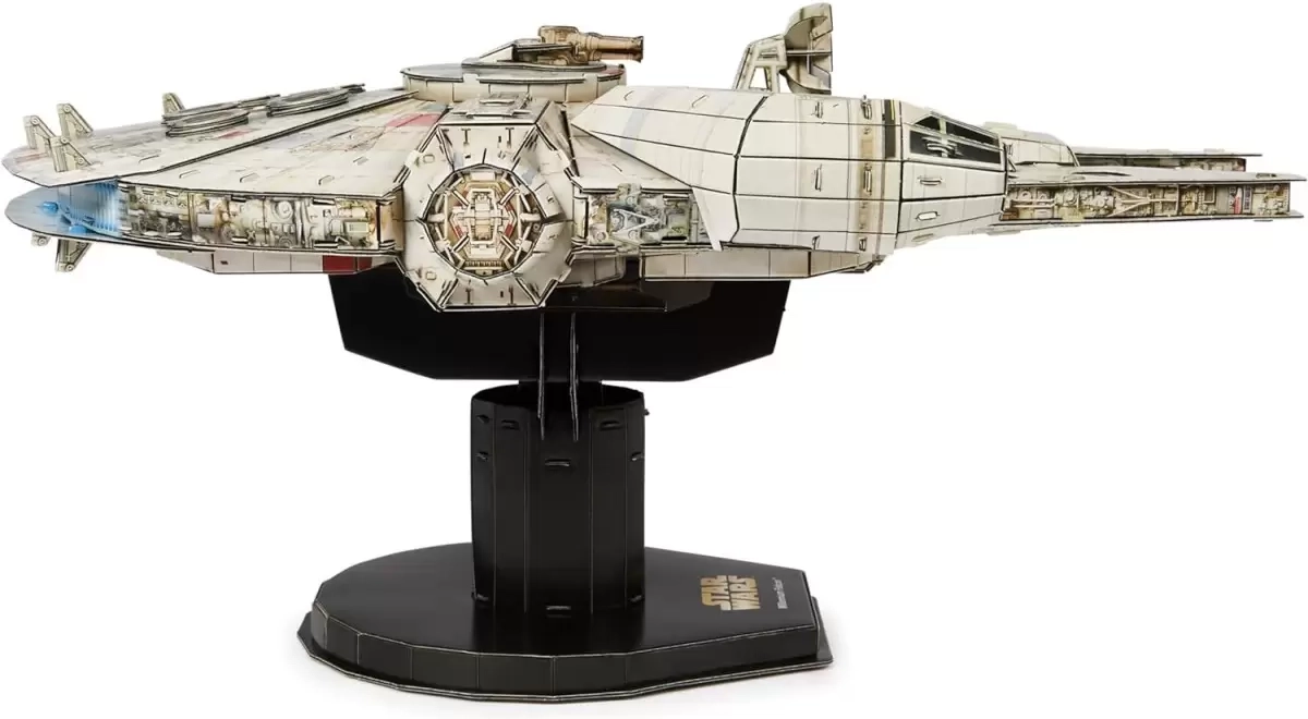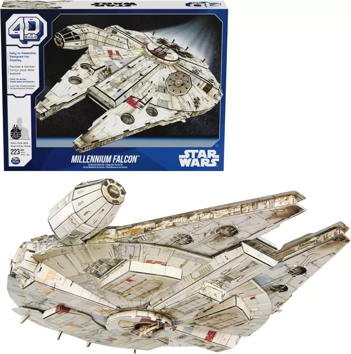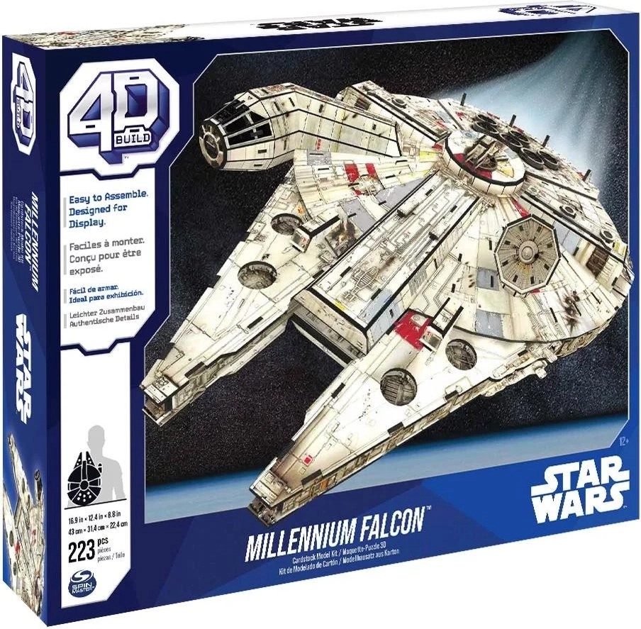 Erlebe den Bau des legendären Millennium Falcon mit authentischer Paneeloptik, Türmen und Cockpit. Das 4D Build Set enthält alles Nötige – Teile einfach aus den Bögen lösen, mit dem beiliegenden Kleber zusammensetzen und das fertige Modell auf den eleganten Ständer mit STAR WARS-Branding stellen.
