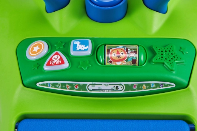Kleine Fahrer freuen sich über die Hupe und das geheime Fach unter dem Sitz für ihre Schätze. Im Lieferumfang ist außerdem ein interaktives Panel enthalten, das Musik und fröhliche Geräusche abspielt und so die Entwicklung der Feinmotorik und Wahrnehmung unterstützt. Die langlebige Kunststoffkonstruktion mit abgerundeten Kanten ist auf Sicherheit ausgelegt.