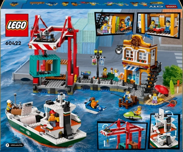 Entdecken Sie den LEGO City Seehafen mit Frachtschiff – ein detailreiches Set für Kinder ab 8 Jahren mit einem funktionierenden Containerkran, einem großen Schiff, Laden, Restaurant, Strand und 8 Minifiguren für endlose Abenteuer.