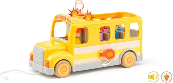 Der fröhliche Schulbus der Marke Woody ist so konzipiert, dass er Spaß macht und gleichzeitig die Fähigkeiten Ihrer Kinder entwickelt. Dieser Plastikbus ist nicht nur sicher, sondern auch attraktiv durch seine bunten Figuren im Inneren, die bewegt und platziert werden können. Dank der Ziehschnur lernen Kinder leicht, ihre Bewegungen zu koordinieren, und die interessanten Geräusche und Lichter ziehen ihre Aufmerksamkeit auf sich.