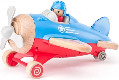 Das Flugzeug ist mit einem drehbaren Propeller und einer kleinen Pilotenfigur ausgestattet, was zum interaktiven Spiel animiert.