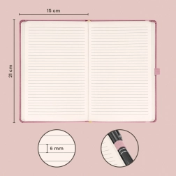 Dieser in Rosa gehaltene Notizblock verbindet Klassik und Eleganz, was ihn zur perfekten Wahl für jede Gelegenheit macht. Seine Oberflächenstruktur ermöglicht einfaches Prägen von Firmenlogos. Die Abmessungen 15 x 21 cm bieten ausreichend Platz für Ihre Gedanken und Pläne.
