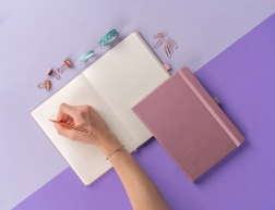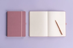 Eleganter rosa Notizblock Neo mit liniertem Papier, ideal für Firmenbranding und persönliche Notizen.