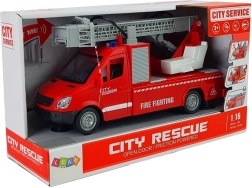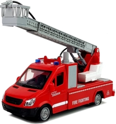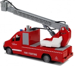 Das Fahrzeug ist mit einer beweglichen Leiter mit einer Länge von bis zu 42 cm ausgestattet! Es gibt auch Dioden, die aus großer Entfernung Aufmerksamkeit erregen können, und einen vorderen Wassertank, der die Quelle für die Sprühpumpe ist - einfach die Pumpe ein paar Mal drücken. Insgesamt ist das Spielzeug im Maßstab 1:16 gehalten.