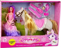 Das Set enthält eine Prinzessin Marionette mit beweglichen Gliedmaßen und ein weißes Pferd, das aus angenehmem Material für ein realistisches Aussehen gefertigt ist.