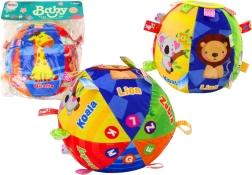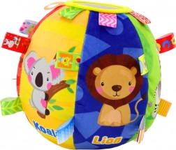 Der Ball ist in mehrere Abschnitte unterteilt, von denen jeder eine andere, intensive Farbe mit freundlichen Tierillustrationen wie Löwe, Elefant, Giraffe oder Zebra bietet. Englische Beschreibungen fügen ein edukatives Element hinzu, das beim Erlernen der ersten Wörter und Erkennen von Tiernamen in einer Fremdsprache hilft.