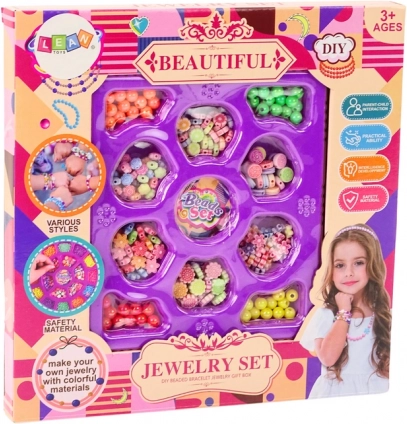 Mit dem Set können verschiedene Schmuckstücke wie Armbänder und Halsketten hergestellt werden. Kinder können eigene Muster entwerfen, was ihre Kreativität, ihre Feinmotorik und die Hand-Auge-Koordination fördert.