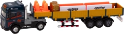 Im Set enthalten sind außerdem 8 Verkehrskegel und 4 Straßensperren in Orange-Weiß zum Erstellen von Verkehrssituationen. Der Lkw verfügt über Antrieb für eigenständige Bewegung, wodurch das Spiel noch spannender wird. Das Produkt hat die CE-Zertifizierung und erfüllt die Norm EN71. Geeignet für Kinder ab 3 Jahren.