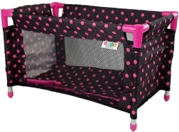 Suchen Sie ein niedliches und zugleich praktisches Puppenbett? Das Modell Alice in Schwarz‑Rosa mit Punkten bietet Kindern ein realistisches Rollenspiel rund um die Babypflege. Dank der Netzseiten behalten Kinder ihre Puppe im Blick und können sie auch während des Spiels leicht beaufsichtigen.