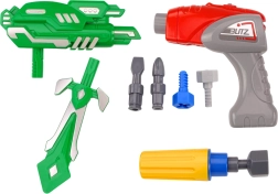 Das Set enthält alles für den sofortigen Spielstart: Montageroboter, Spielzeug-Bohrmaschine mit Aufsätzen, Schwert und Rüstung sowie AG13-Batterien. Dank der robusten Kunststoffausführung ist es ideal für den täglichen Einsatz und die Förderung technischen Denkens.