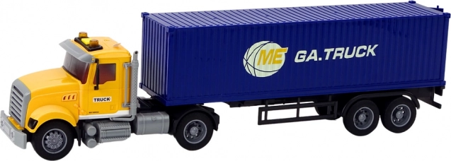 Der gelbe LKW mit blauem Anhänger besticht durch Licht- und Soundeffekte, die für Realismus sorgen und den Spielspaß erhöhen. Motorgeräusche, Hupe und Rückfahrgeräusche lassen das Kind sich wie ein echter Fahrer eines großen LKWs fühlen.