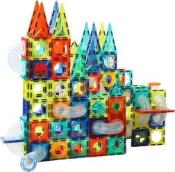 Genießen Sie mit Ihrem Kind stundenlangen Spaß mit diesem Set aus Murmelbahn und magnetischen Bausteinen! Dieses spannende Spielzeug vereint zwei beliebte Aktivitäten – das Bauen mit Magnetbausteinen und eine faszinierende Murmelbahn.
