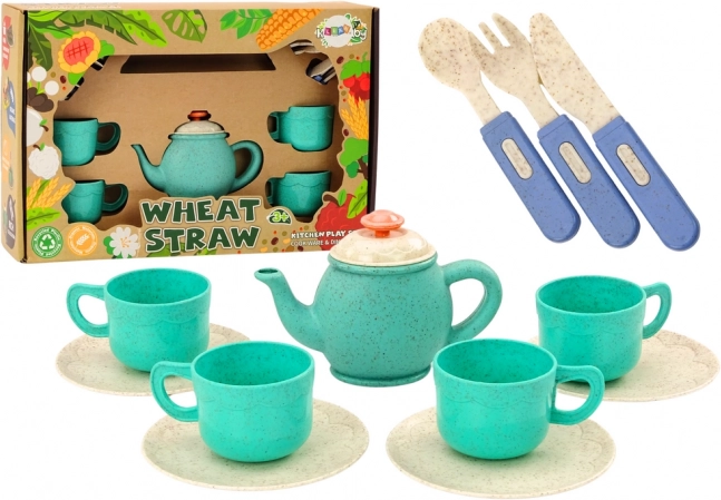 Set Geschirr mit Tassen, Teller, Besteck und Kanne 22 Stk
