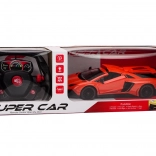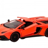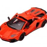 Orange Karosserie mit schwarzen Details schafft das authentische Aussehen eines Sportwagens. Alle Türen sind öffnend und tragen zur Realität bei.