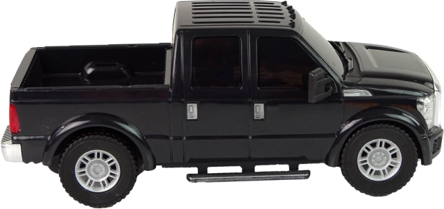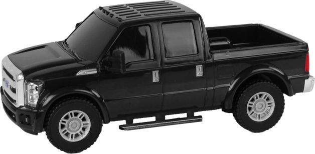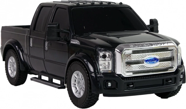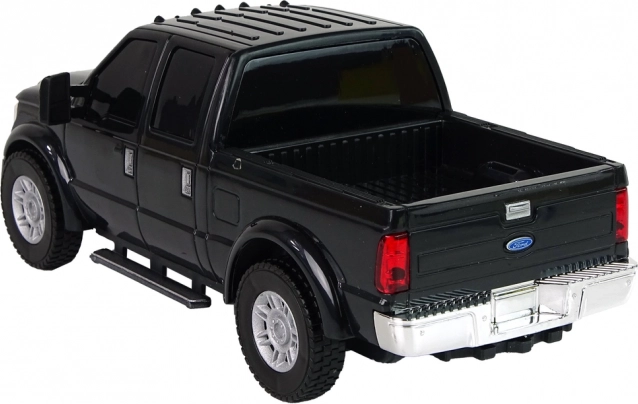 Schwarzes Ford F-350 Pickup-Auto ist ein stilvolles Modell mit originalgetreu gestalteten Details, wie silbernen Karosserieakzenten und getönten Fenstern. Dieses Modell wird sowohl von Kindern als auch von erwachsenen Autofans wegen seines realistischen Designs bewundert.