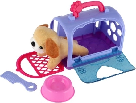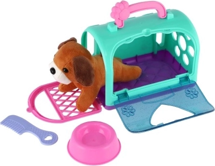 Lieben Sie Hunde? Mit dieser Transportbox kann Ihr Kind ein fantastisches Spiel zur Pflege des Haustiers genießen. Das Set enthält nicht nur eine Plastikbox mit einem Stoffhund im Inneren, sondern auch eine Trinkschale und einen Kamm, die den Kindern helfen, Verantwortung und Pflege zu lernen.