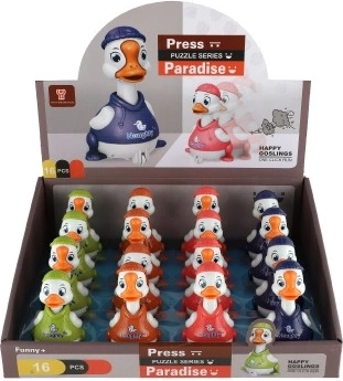 Die Ente mit Aufziehmotor bietet einfachen, fesselnden Spielspaß: Drücke den Kopf und beobachte, wie sie dank des Schwungrad-Mechanismus nach vorn fährt. Widerstandsfähiger Kunststoff, glatte Kanten und die kompakten Maße 7 × 9 × 5 cm sorgen für sicheres Spielen und leichtes Greifen mit kleinen Kinderhänden.