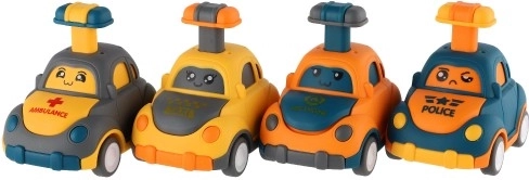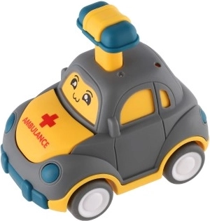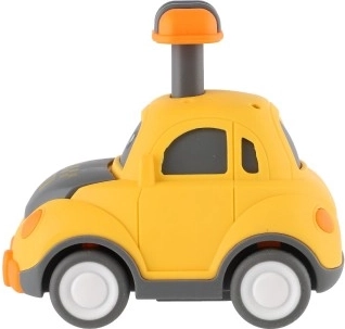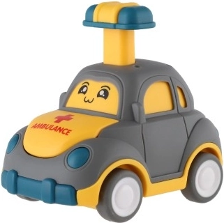 Ein niedliches Plastikauto mit Gesicht erfreut jeden kleinen Rennfahrer. Einfach den Hebel auf dem Dach drückenfährt von selbst los dank Schwungrad. Die kompakte Größe von 9 cm ist ideal für Kinderhände, die sichere Ausführung und vier verschiedene Varianten (Polizei, Ambulanz, Taxi u. a.) fördern Fantasie und Motorik. Geeignet für Kinder ab 3 Jahren.