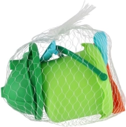Das leichte Kunststoff-Set in leuchtenden Farben wird in einem praktischen Netzbeutel aufbewahrt – ideal für Sandkasten und Strand.
