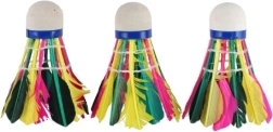 Set aus drei Federbadminton-Bällen für Freizeitspiel und Training. Dank hochwertiger Federn und harter Korkbasis bieten die Bälle einen stabilen Flug, ausgezeichnete Flugeigenschaften und einen zuverlässigen Rückprall. Das farbige Design erhöht die Sichtbarkeit beim Spiel im Freien und in der Halle.