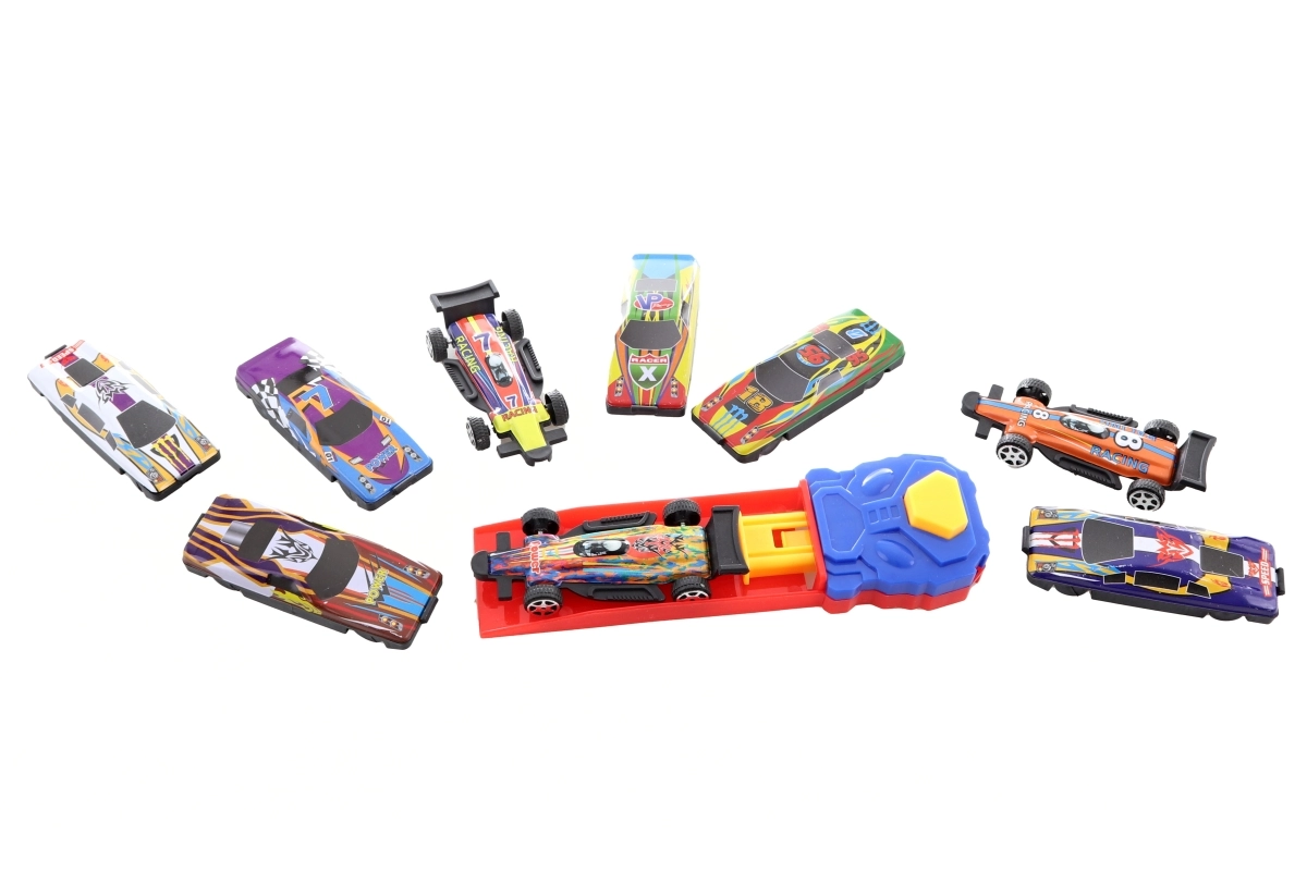 Der Lieferumfang umfasst 9 Metallautos und eine Abschussbasis, mit der sich spannungsgeladene Rennszenarien ganz leicht erstellen lassen. Die kompakten Abmessungen sind ideal für zu Hause und unterwegs.