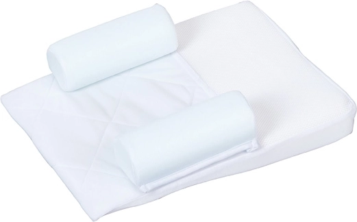 Die Unterlage ermöglicht es dem Baby, bequem auf dem Rücken zu liegen, und schützt gleichzeitig sein Köpfchen vor Abflachung, die bei lange auf dem Rücken liegenden Babys auftreten kann.